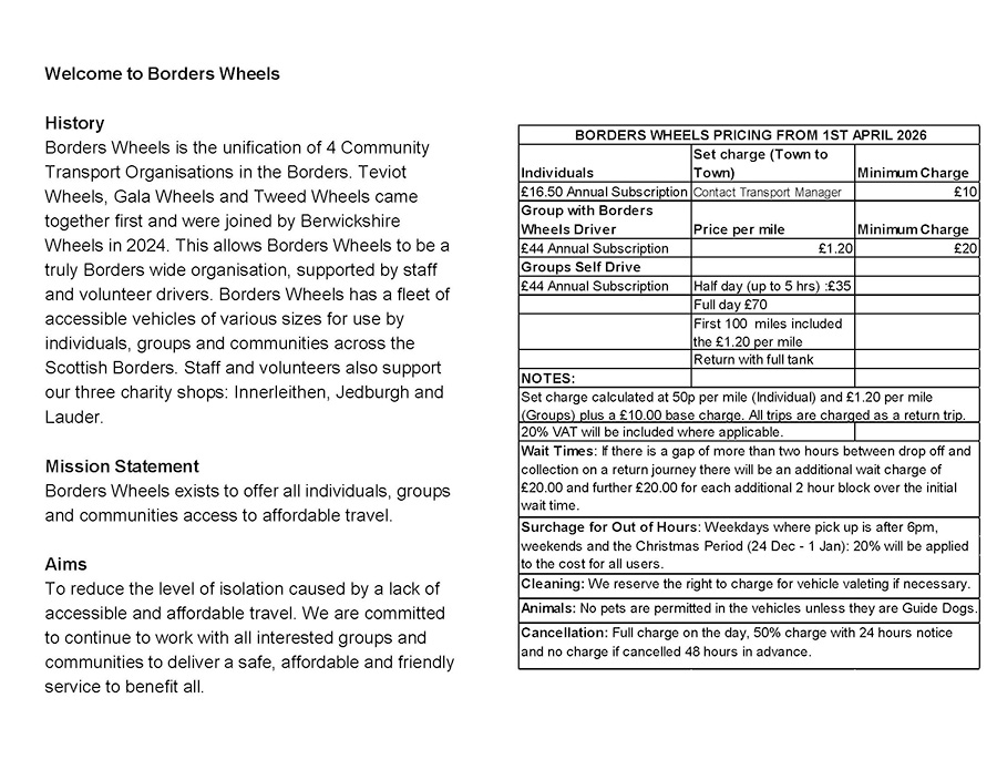 We are members of the Community Transport Association and work with fellow providers as part of Borders Community Transport Partnership